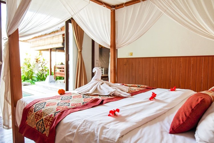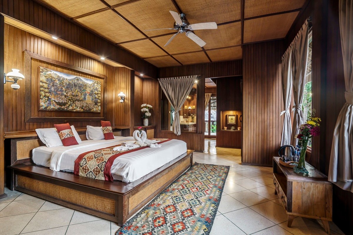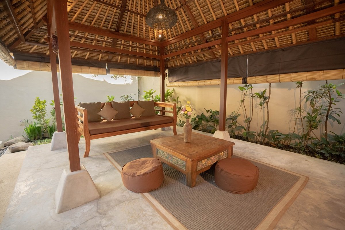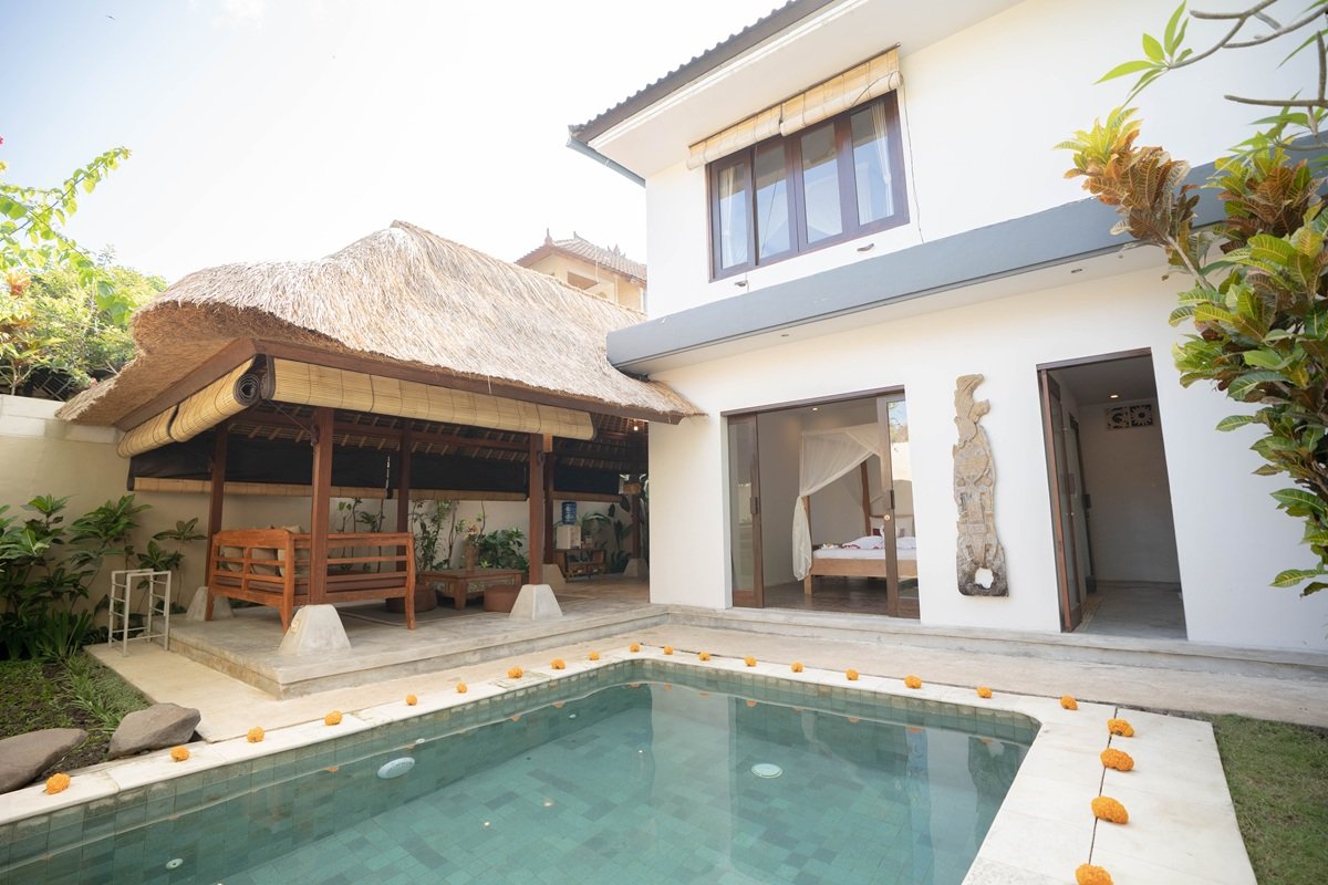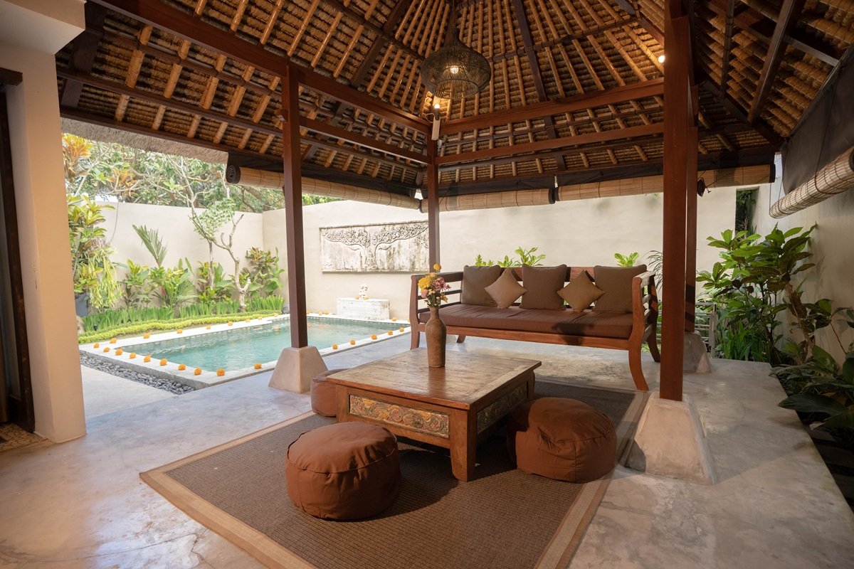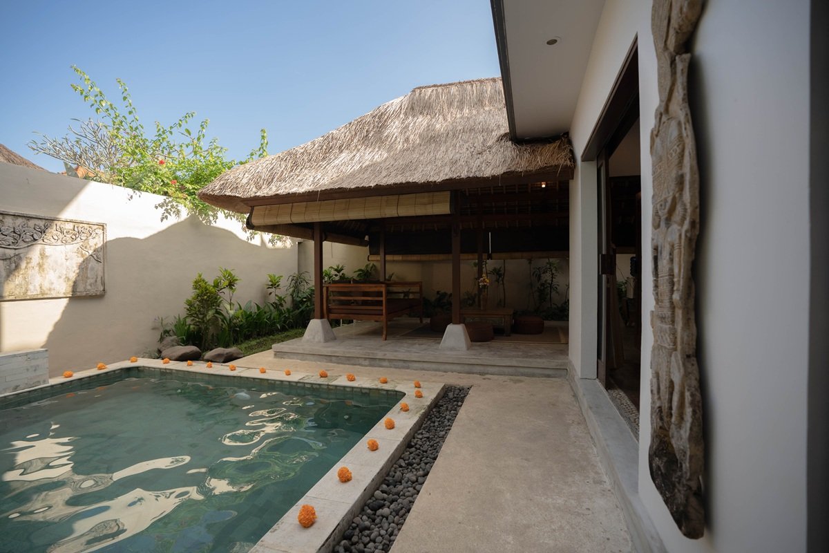 Villa Sujati is a two-bedroom villa that blends Japanese-inspired simplicity with Balinese craftsmanship. Built mostly from natural wood, it offers a warm, calm atmosphere with thoughtful cultural details.